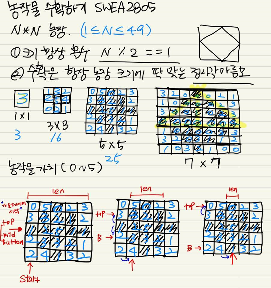 1. 농장은 N*N 크기로 크기는 항상 홀수이다. (1<= N <=49)